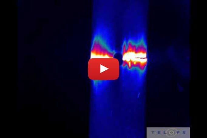 การทดสอบแรงดึงของแท่งเหล็ก สังเกตด้วยกล้องอินฟราเรด Telops’ FAST M2k วีดีโอโดยความอนุเคราะห์ของ University of Waterloo, แคนาดา